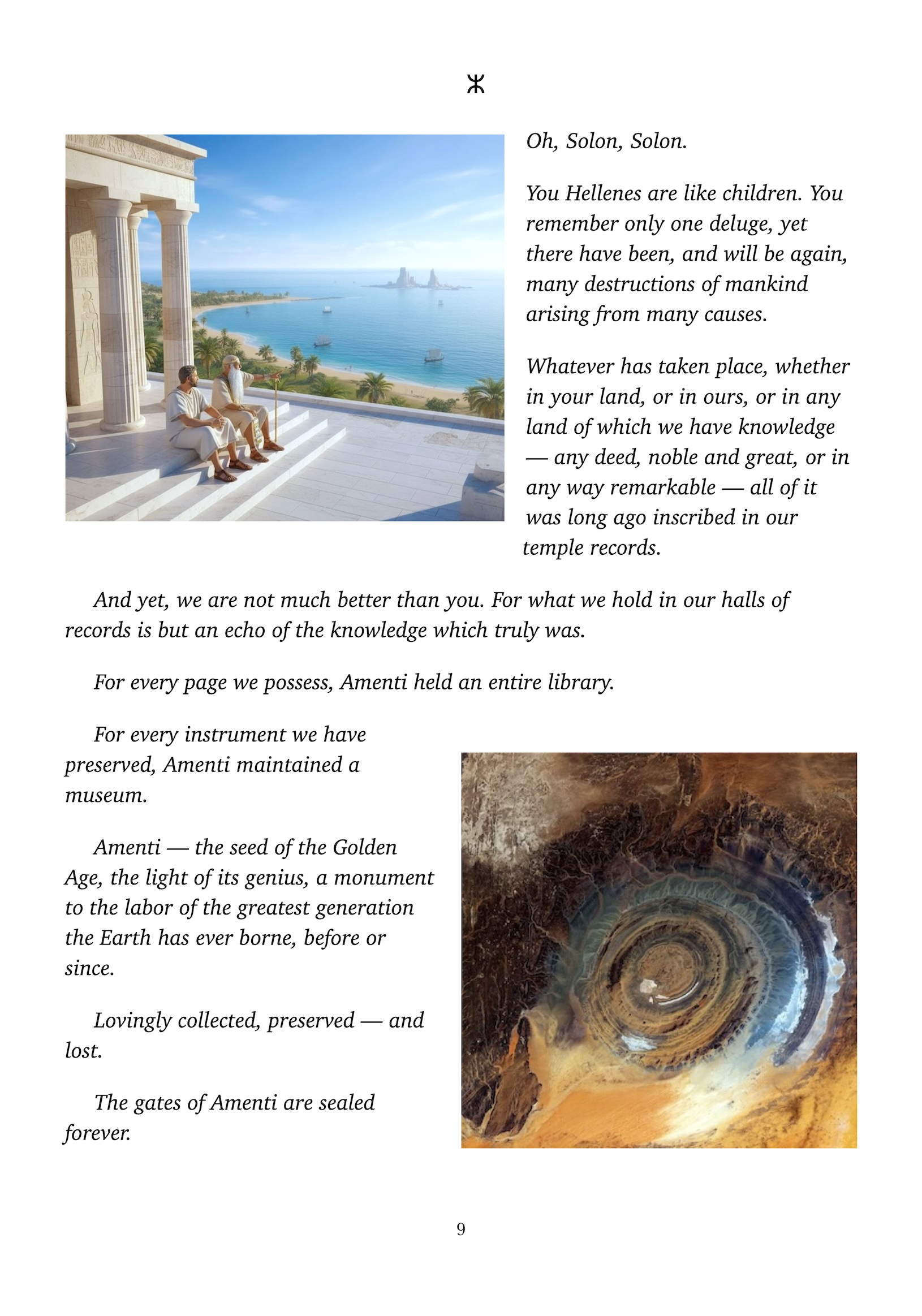 The famous symmetrical shape? The Atlanteans placed their dwellings in the carcass of an even more perfect design — wrought into this world by their forefathers, colossal in proportion. From the engineering scale of the lost age our today's AGI aspirations would seem like a been there, done that triviality. You have known this long lost age of genius and prosperity as